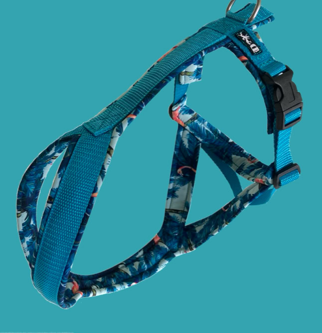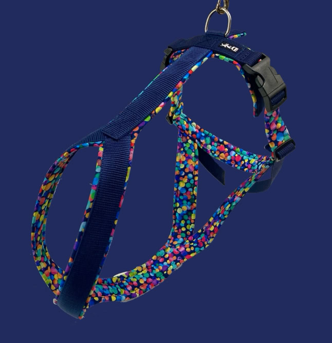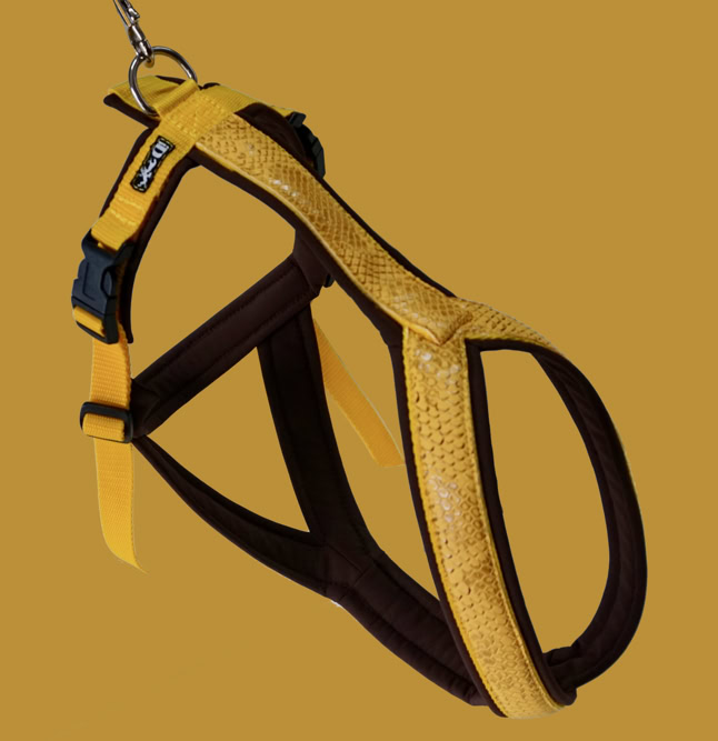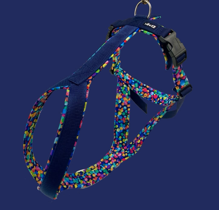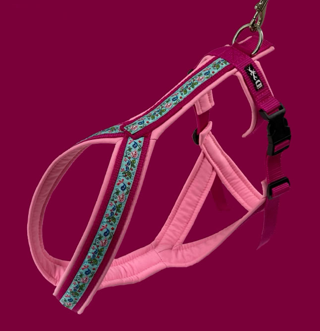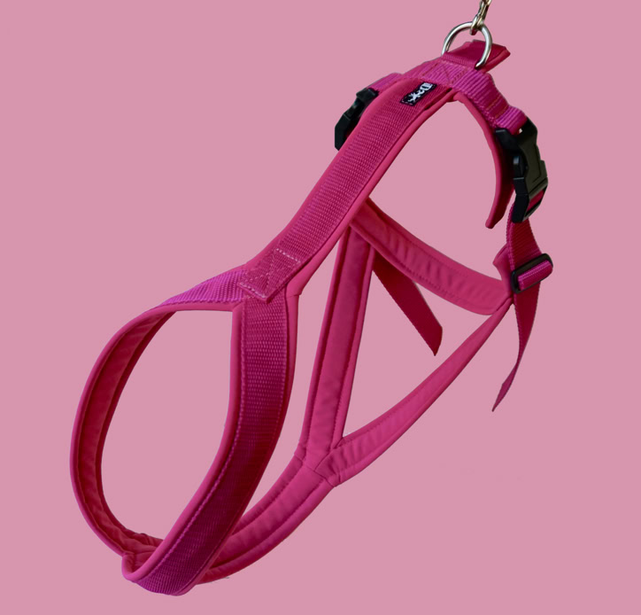 Am Bauchgurt rechts und links sind die Geschirre um einige Zentimeter verstellbar.