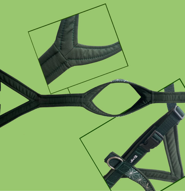 Das Highlight unseres Geschirrs ist die wie aus einem Guss gefertigte Softshell-Unterpolsterung. Sie ist besonders leicht, sehr weich, fellschonend und kann häufig gewaschen werden. Für noch mehr Komfort unterpolstern wir den Bauchsteg zusätzlich mit weichem Volumenvlies.