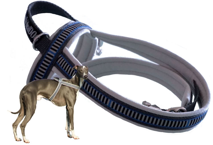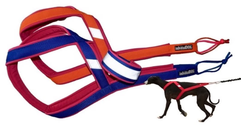 Wir stellen drei Arten von Hunde-Geschirren her, das superleichte Windhund-Geschirr als einfaches Geschirr für den Alltag, das Allround-Geschirr für z.B. stark ziehende Hunde, Schleppleinentraining oder Mantrailing und unser Zuggeschirr, für Zughundesport wie z.B. Canicross.